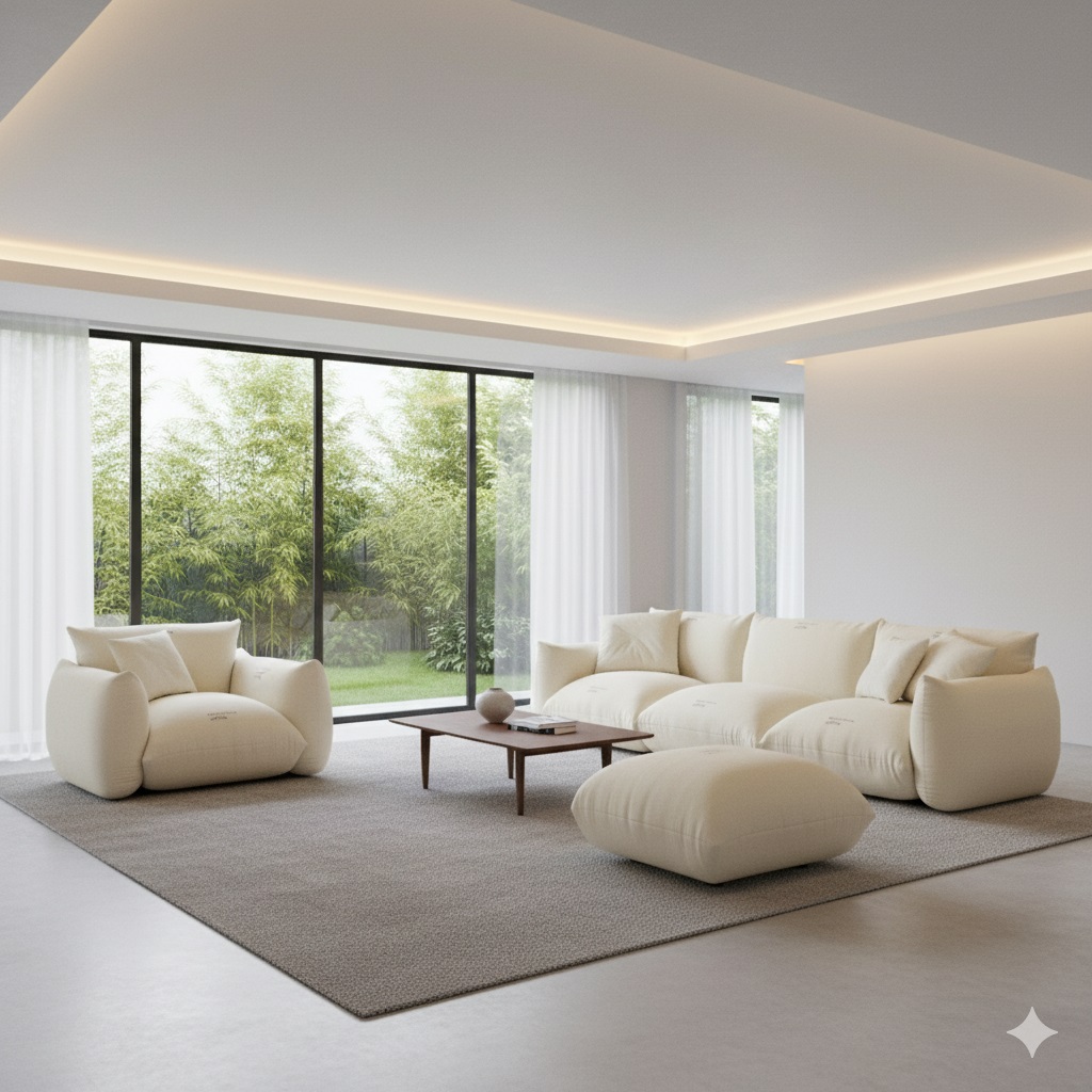 クッションが積み重なったようなデザインは、高級感と親近感を両立。家族の団欒にぴったりです。 - セパレート構造