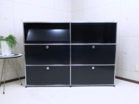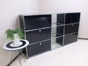 東京都港区にてUSM Haller/USMハラー キャビネット ブラック 2列3段を出張買取り致しました。 上段右がマガジンラック、左がオープンシェルフ、 中断両側がドロップダウンドア、下段両側がエクステンション… -