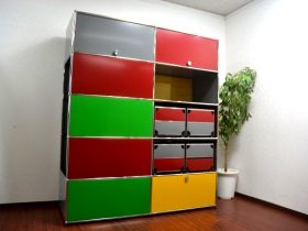 USMハラー 2列5段 マルチカラー キャビネット ハンガーラック付きを 横浜市内にて買取りました。 2列5段のマルチカラー キャビネットです。 片側側面がハンガーラック仕様になっています。 上段2列がアコー… -